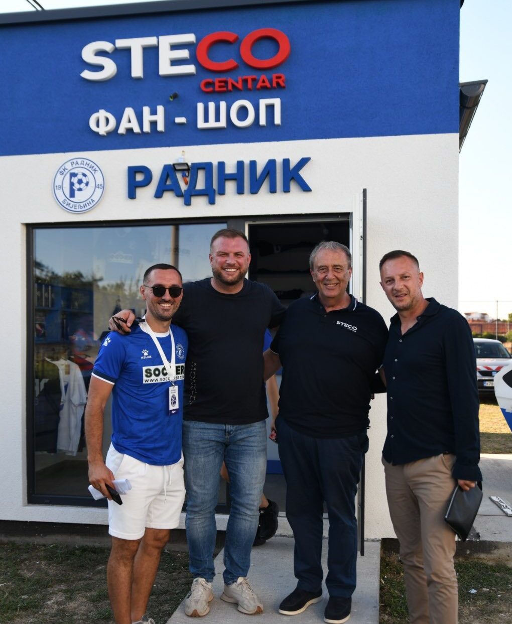 Član upravnog odbora i donator objekta, direktor kompanije Steko centar gospodin Milenko Stevanović, u društvu predsjednika upravnog odbora FK Radnik Nedeljka Ćorića, svečano je otvorio rad novog objekta.