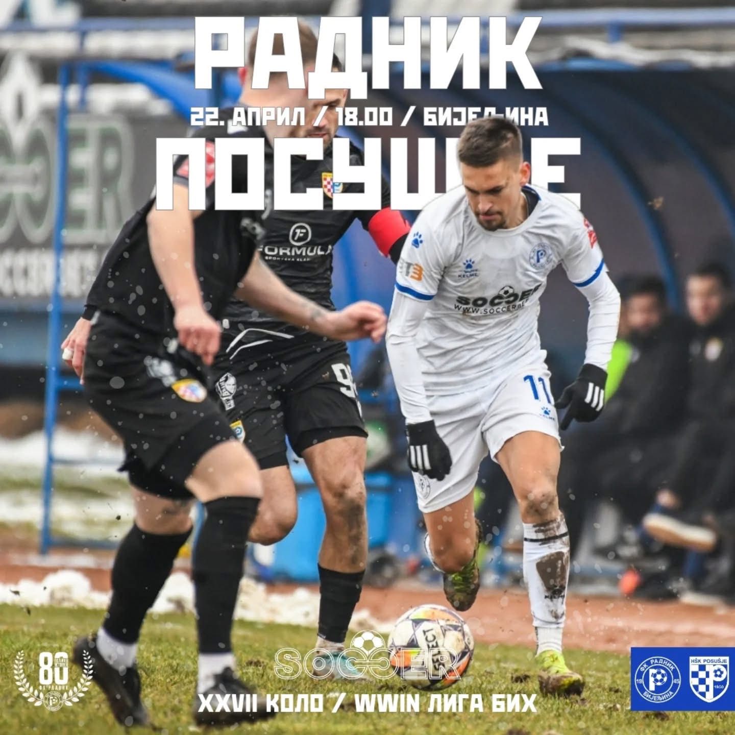 Radnik ovu utakmicu dočekuje u dobrom raspoloženju nakon pobjede i dobre igre u Tuzli. Međutim i ekipa Posušja dolazi nakon pobjede nad Veležom a s obzirom da obje ekipe vode grčevitu borbu za opstanak, očekuje nas zanimljiva utakmica.