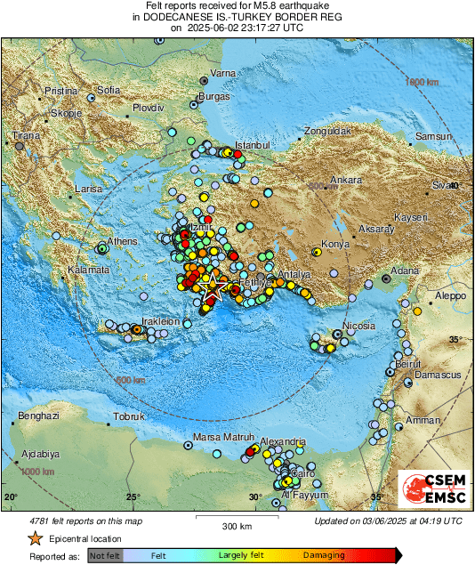 3. jun 2025.ANKARA, ATINA – Zemljotres magnitude 6.2 stepeni Rihtera zabilježen je rano jutros u blizini Marmarisa u Turskoj, i u blizini grčkog ostrva Rodos....